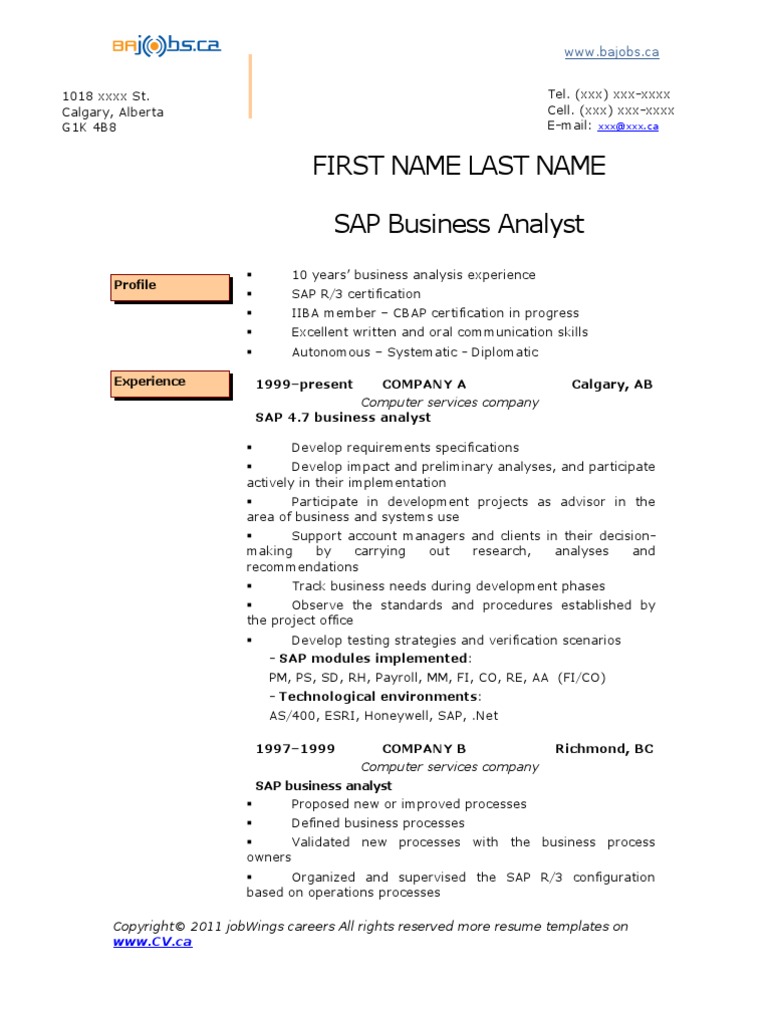Business Analyst Cv Format Business Analyst Resume Sample And Template